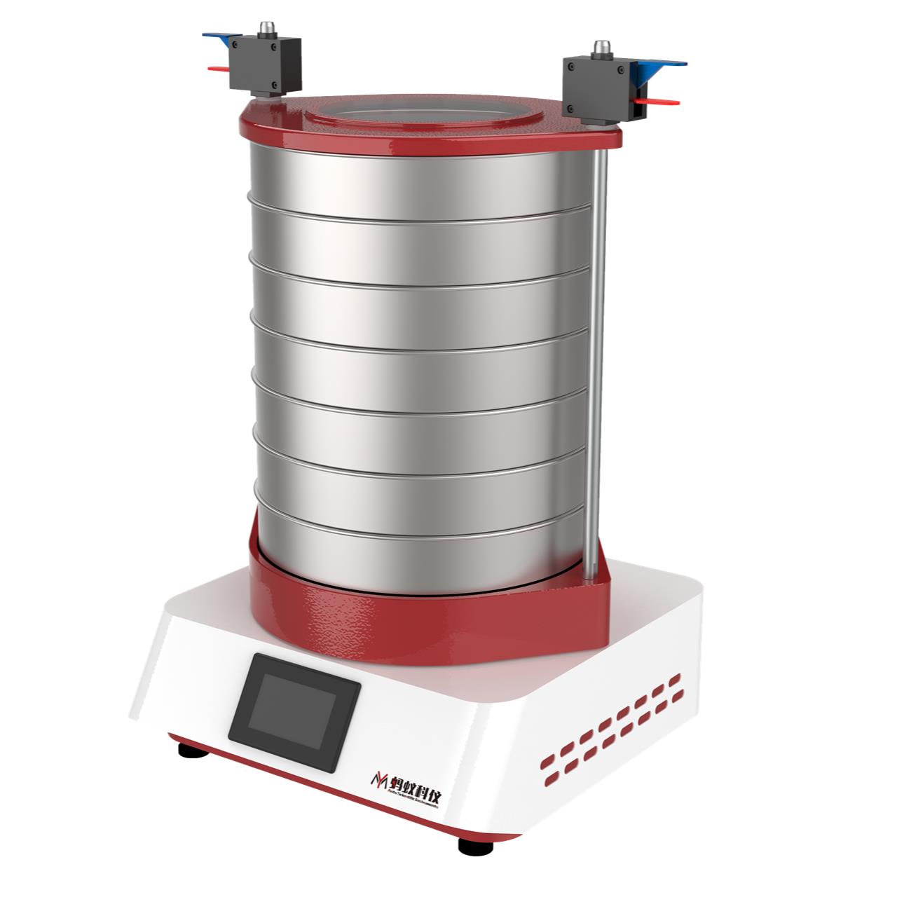 AF150的筛盘由驱动电机带动,能量通过偏心装置传递,使得筛盘以15mm为半径进行水平转动。筛分仪可同时放置多个分析筛,样品从最上面分析筛往下开始分级。样品在筛分仪的水平圆周振动下,小于分析筛孔径的样品会依次性下落,最终最细的样品落在收集盘内,每个分析筛里面都有所对应尺寸的样品,从而完成样品的分级。